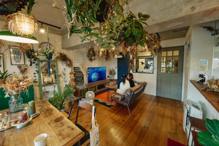 「風通し・日当たり・2Fからの景色の3点で即決でした」。ダイニング横の窓を開けると心地よい風が通り抜けます。「ふたりとも新築は好みじゃなく、リノベーションで古道具に合うような家にしたくて」と完成した家は、おばあさまから譲られた古道具や黒電話がしっくりと馴染みます。
